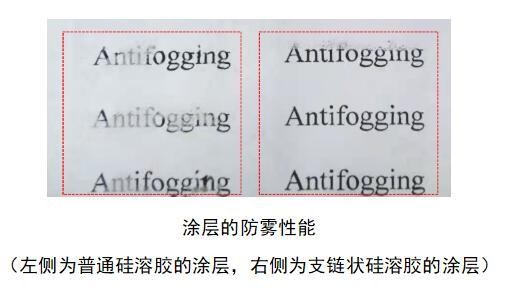 应用于光伏玻璃的功能涂层,不但能够提高透光率,还具有自清洁功能。防雾试验证明,用支链状硅溶胶制备的涂层具有良好的防雾效果,能够达到超亲水效果。